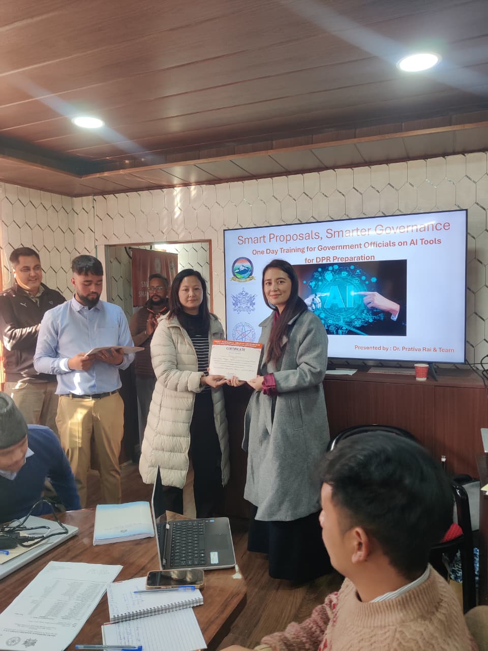 Leveraging the power of AI tools can help to develop clear, well-structured proposals quickly and effectively. As an initiative in this direction, the Sikkim State Council of Science and Technology, under the Science and Technology Department, conceptualised a one-day training for state government officials titled ‘Smart Proposals, Smarter Governance’. The objective of this training was to equip state government officials to use various AI tools such as ChatGPT, Gamma AI, Napkin AI, and Canva AI Magic Studio for drafting proposals, presentations, and data analysis. The technical sessions were conducted by Dr. Prativa Rai, Assistant Scientific Officer (Master Resource Person), along with Kishore Gautam, Niraj Sharma, and Ujal Gautam as Technical Resource Persons. Following this training, the participants developed DPRs on their department-related topics using these AI tools and also presented them. As on date, a total of 7 batches comprising 80 officials from 23 departments including senior officials have completed this training successfully. The programme received an aggregate feedback rating of 4.7 out of 5, reflecting its success and relevance. With rising interest, more departments are registering for future batches. The Science and Technology Department plans to expand such initiatives to the district level in future.