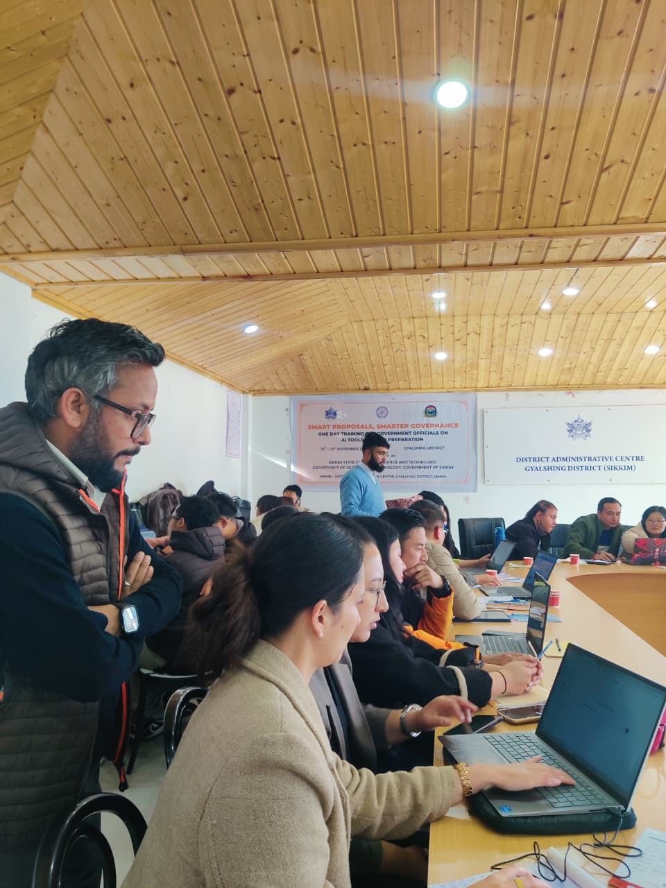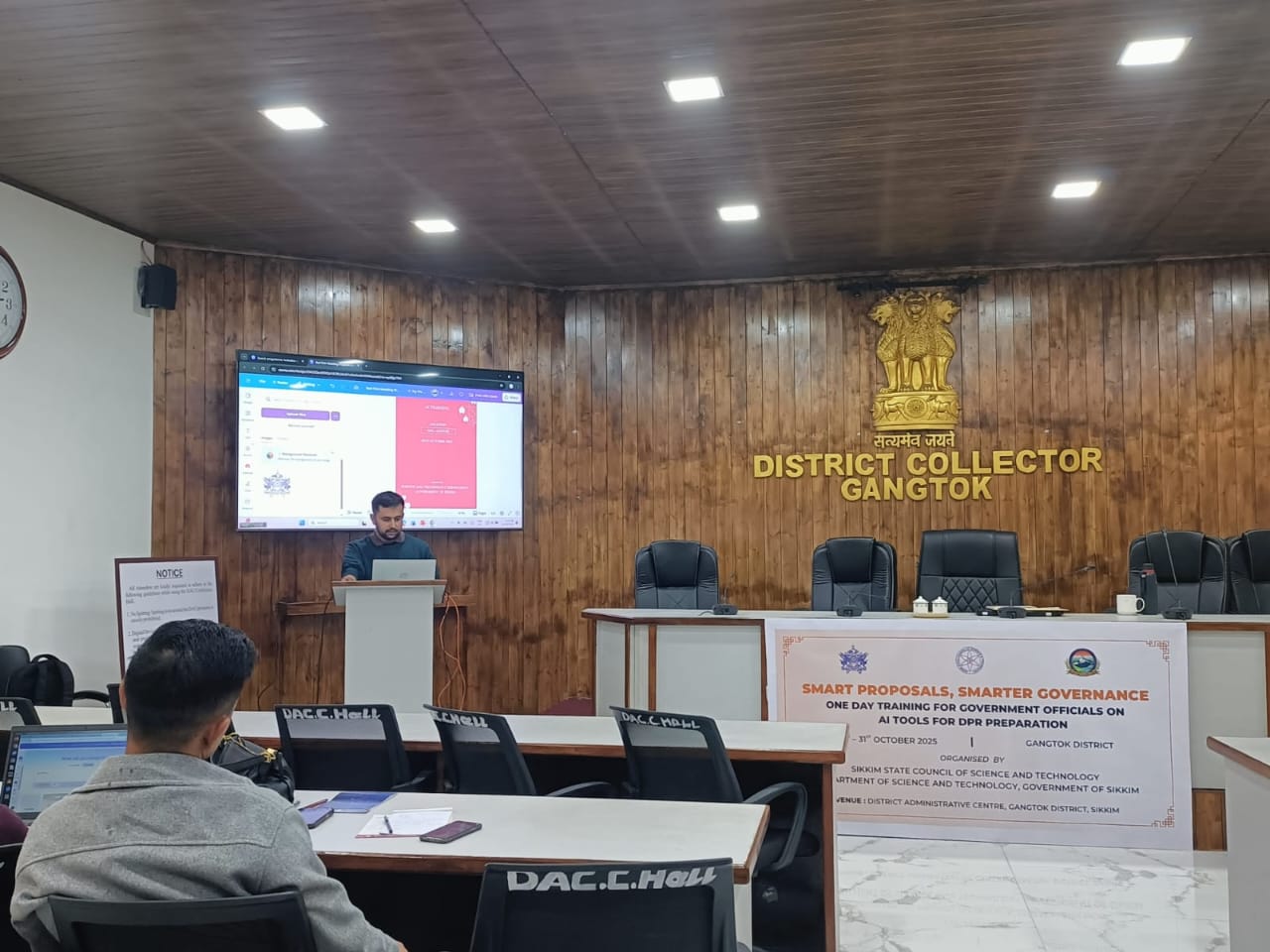 Sikkim State Council of Science & Technology, Science and Technology Department, Government of Sikkim successfully conducted a state-wide AI training programme for government officials titled “Smart Proposals, Smarter Governance – One Day Training for Government Officials on AI Tools for DPR Preparation.” Implemented across Pakyong, Gangtok, Namchi, Mangan, Gyalshing & Soreng districts along with 08 batches conducted for line departments at the Head Office., the programme marks one of the largest digital-capacity interventions undertaken by the Government of Sikkim.