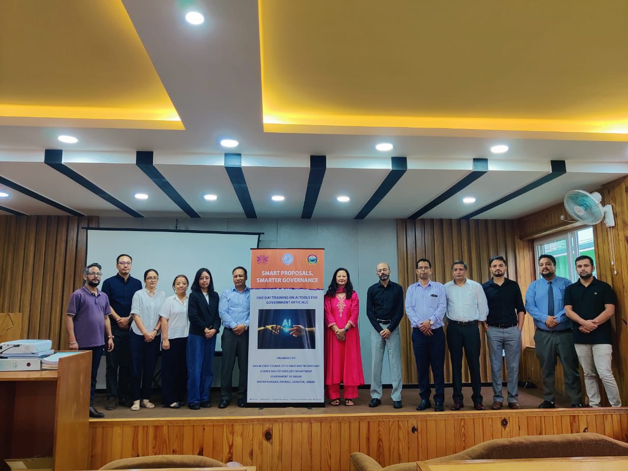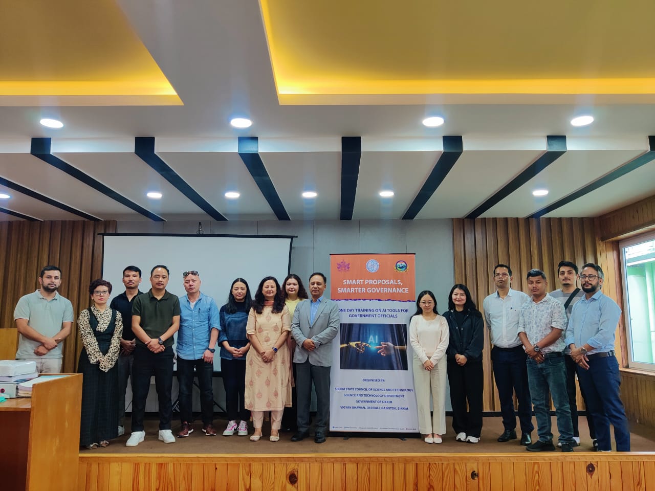 Leveraging the power of AI tools can help to develop clear, well-structured proposals quickly and effectively. As an initiative in this direction, the Sikkim State Council of Science and Technology, under the Science and Technology Department, conceptualised a one-day training for state government officials titled ‘Smart Proposals, Smarter Governance’. The objective of this training was to equip state government officials to use various AI tools such as ChatGPT, Gamma AI, Napkin AI, and Canva AI Magic Studio for drafting proposals, presentations, and data analysis. The technical sessions were conducted by Dr. Prativa Rai, Assistant Scientific Officer (Master Resource Person), along with Kishore Gautam, Niraj Sharma, and Ujal Gautam as Technical Resource Persons. Following this training, the participants developed DPRs on their department-related topics using these AI tools and also presented them. As on date, a total of 7 batches comprising 80 officials from 23 departments including senior officials have completed this training successfully. The programme received an aggregate feedback rating of 4.7 out of 5, reflecting its success and relevance. With rising interest, more departments are registering for future batches. The Science and Technology Department plans to expand such initiatives to the district level in future.